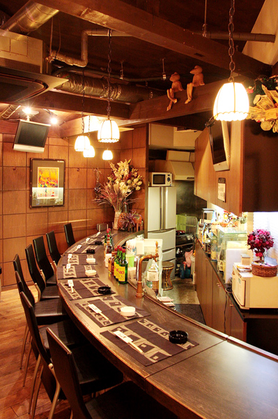 弧を描いたカウンターは人との触合いを大切にする気持ちを表現させました。